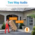 - Tvåvägs samtal och larmljus - Använd den inbyggda mikrofonen, högtalaren och den bländande lampblixten för att hälsa gäster välkomna eller avskräcka inkräktare direkt från appen.