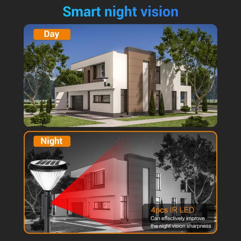 - Nattseende i fullfärg - Fyra IR-lysdioder plus ett 300lm vitt ljus lyser upp trädgården efter skymningen och slås på automatiskt när rörelse känns av.