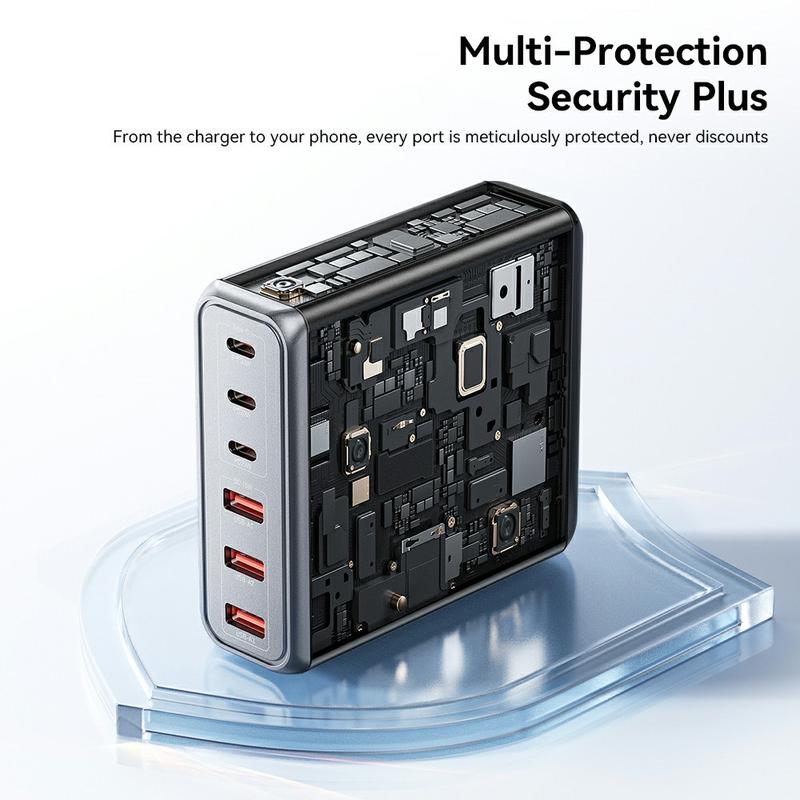 - Sex laddningsportar: 3× USB-C och 3× USB-A för samtidig laddning