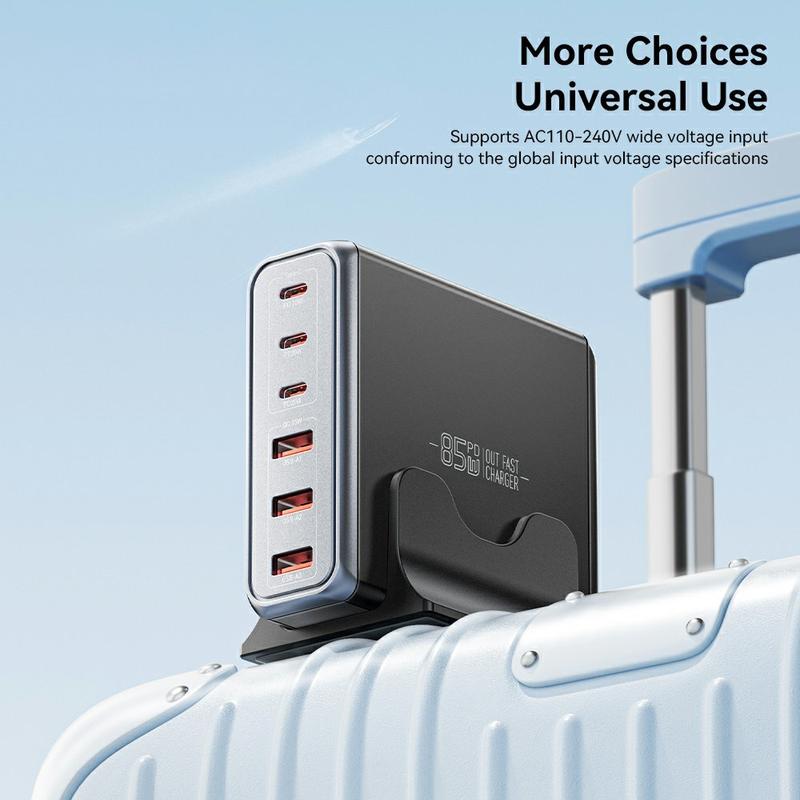 ESSAGER 85W GaN Desktop Charger ersätter flera skrymmande adaptrar med en kraftfull, platsbesparande lösning. Med sex portar, avancerad GaN-effektivitet, stöd för flera enheter och global spänningskompatibilitet är det ett pålitligt val för vardagsladdning hemma eller på språng.