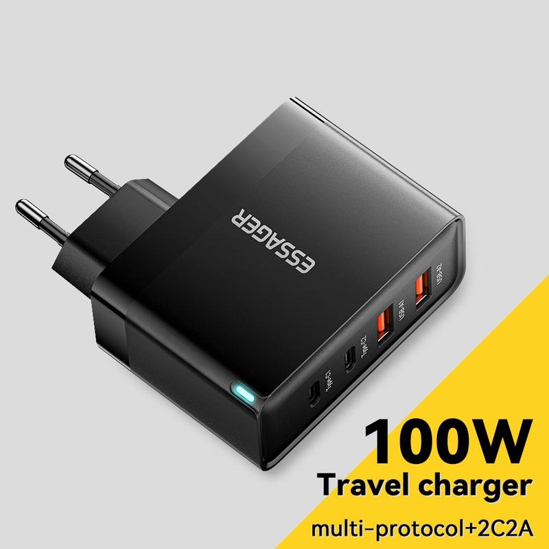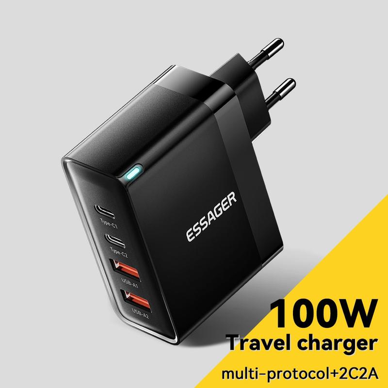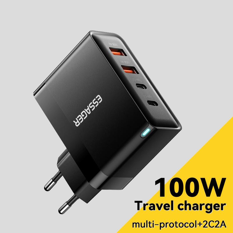 Ladda upp alla dina enheter effektivt med Essager ES-CD37 100W snabbladdningsadapter, en laddningsstation med flera portar som är utformad för snabb, säker och samtidig laddning. Utrustad med 2 USB-C- och 2 USB-A-portar stöder denna högeffektsladdare flera laddningsprotokoll och är perfekt för användning i hemmet, på kontoret och på resan. Med universell spänningskompatibilitet (100-240 V) säkerställer den global användbarhet, vilket gör den till ett måste för teknikanvändare.