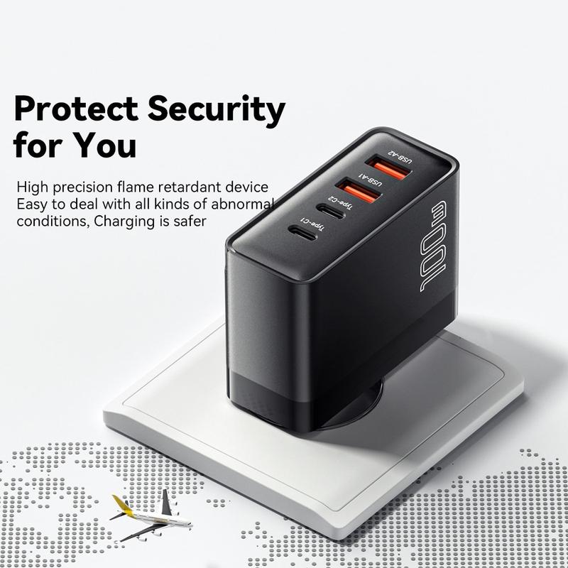 - Ladda upp till 4 enheter samtidigt - Med 2 USB-C + 2 USB-A-portar stöder den här laddaren bärbara datorer, surfplattor, smartphones, hörlurar och mycket mer.