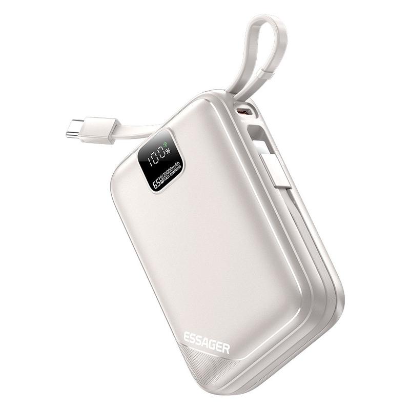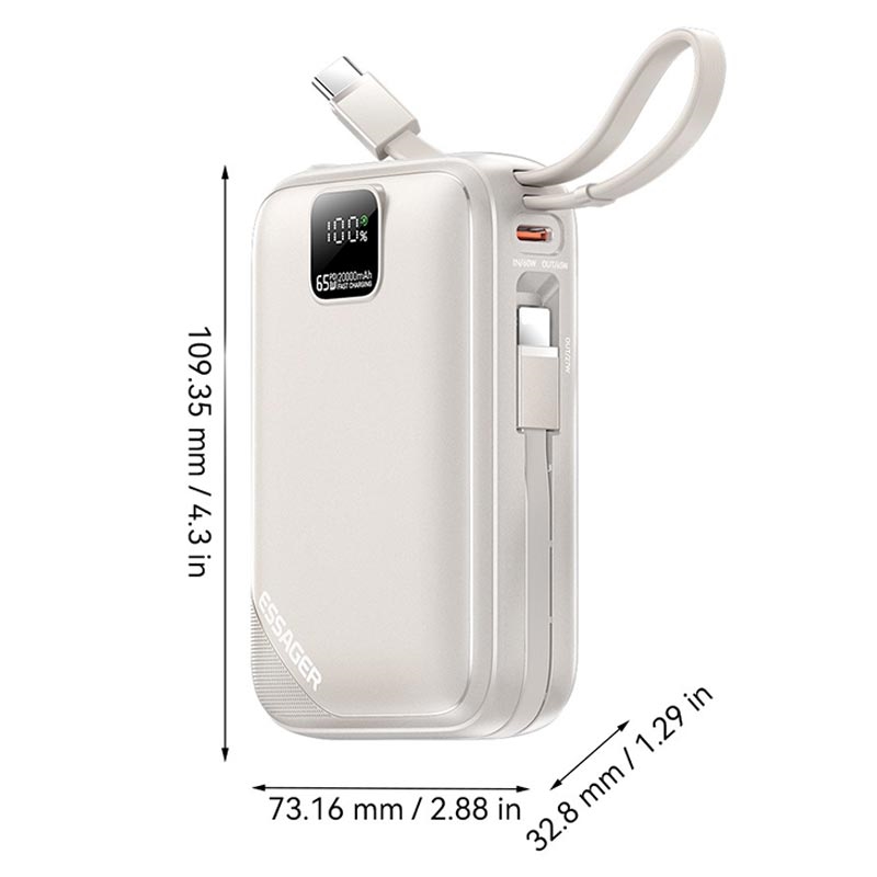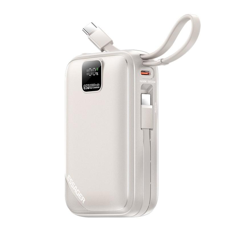 ESSAGER PD 65W powerbank kombinerar snabb laddning på laptop-nivå, dubbla inbyggda kablar, hög kapacitet och smart LED-övervakning, vilket gör den till den ultimata allt-i-ett-laddningslösningen för resor, arbete och vardag.