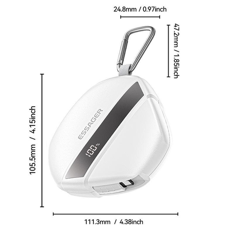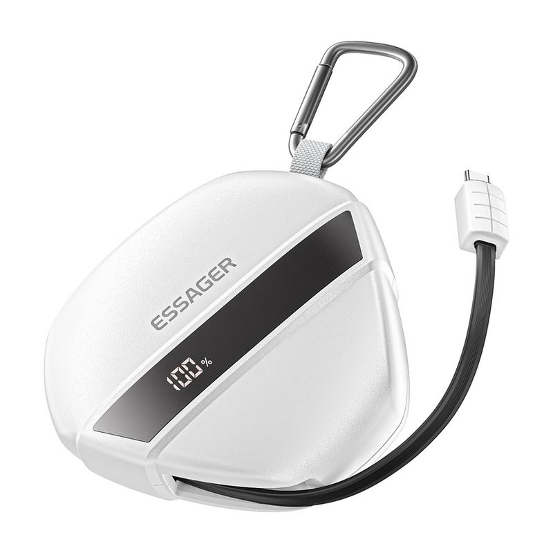 ESSAGER 22,5 W snabbladdande powerbank erbjuder höghastighetsladdning, inbyggd kabel, hållbar konstruktion och resevänlig design, vilket gör den till en utmärkt följeslagare för daglig användning, pendling och utomhusaktiviteter.