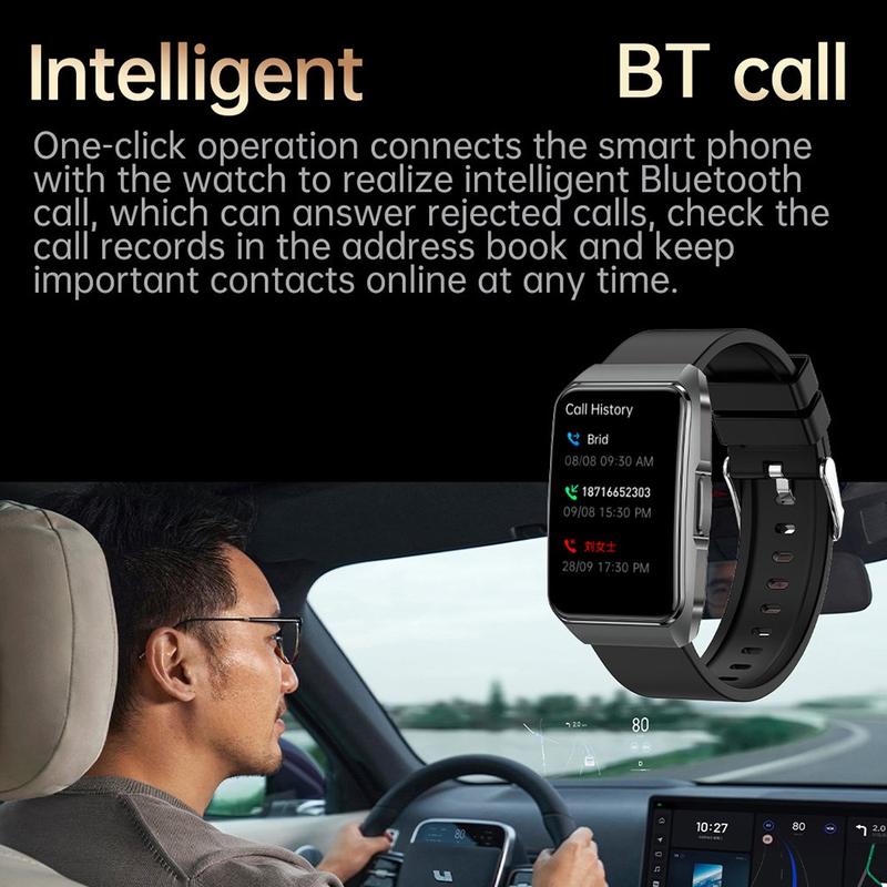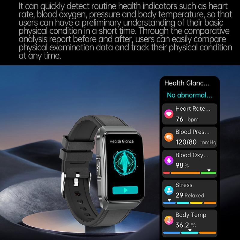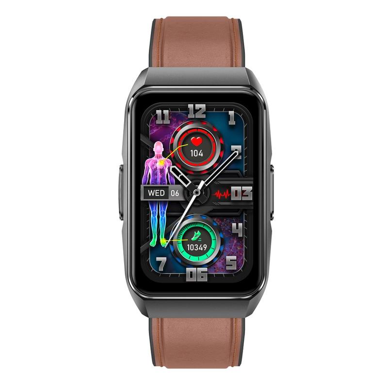 ET650 Vattentät smartklocka med kroppstemperatur, hälsomätare och Bluetooth-samtal - läder- och silikonarmband