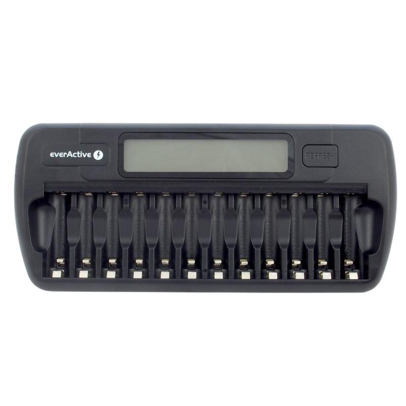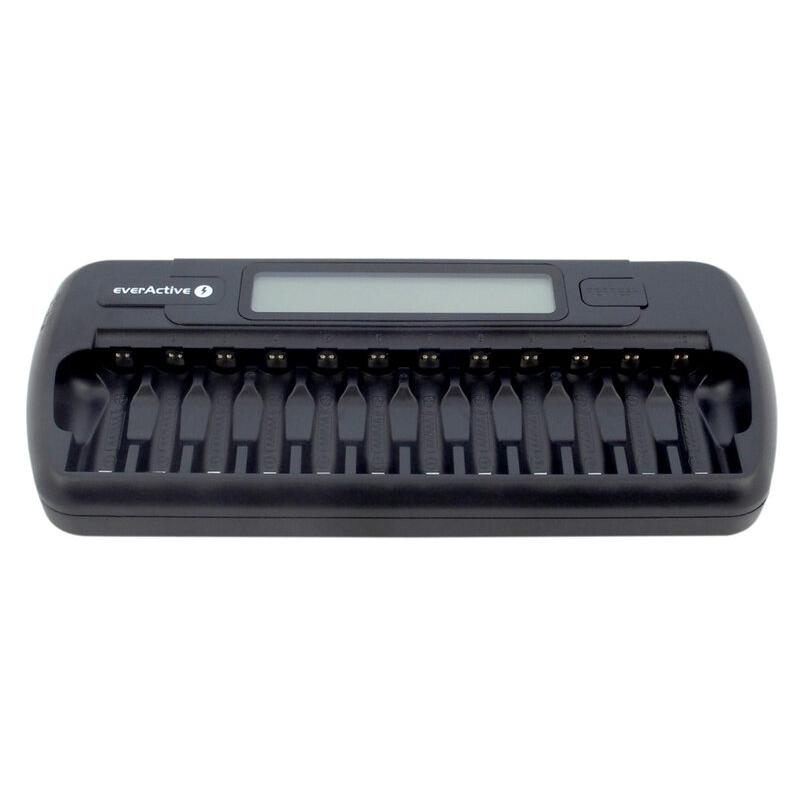 EverActive NC-1200 Smart batteriladdare för 12x AAA/AA - LCD-display, billaddare, nätadapter med EU-kontakt