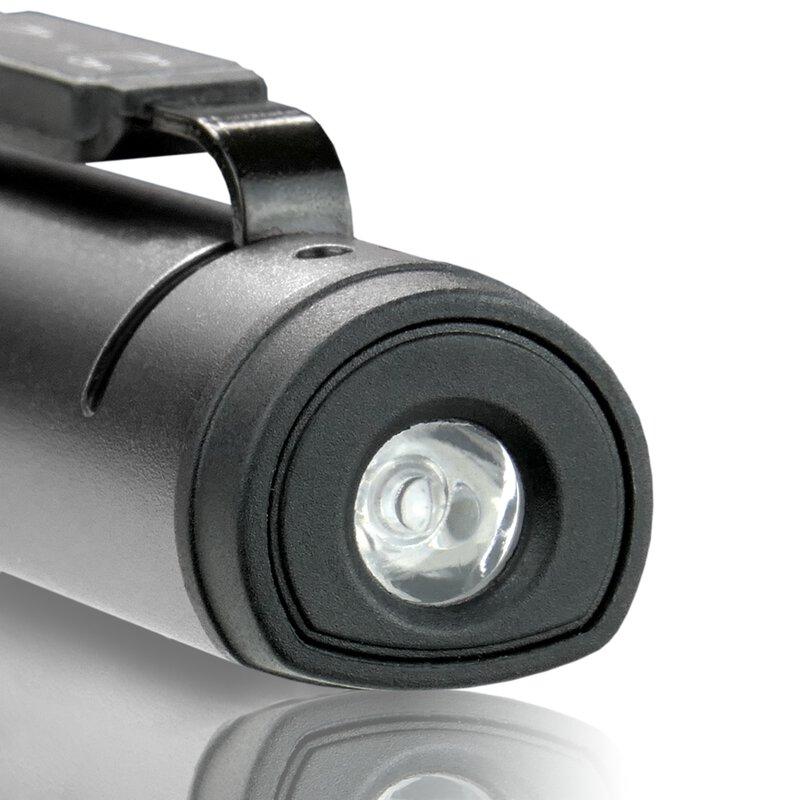 - Fyra oberoende ljuskällor: universellt ljus med lång räckvidd, starkt sidoljus med brett ljusflöde, avancerat UV-ljus (våglängd 365 nm) och multifunktionell laserpekare (700 nm)