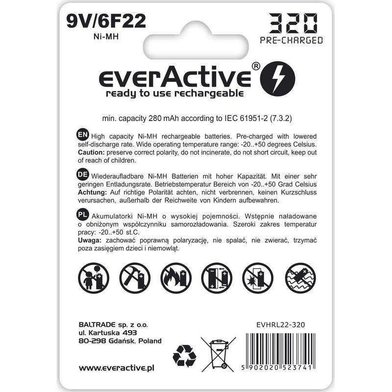 EverActive Professional Line EVHRL22-320 Ni-MH 6F22/9V uppladdningsbart batteri 320mAh