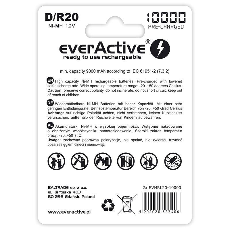 EverActive Professional Line EVHRL20-10000 Ni-MH R20/D Uppladdningsbara batterier 10000mAh - 2 st.