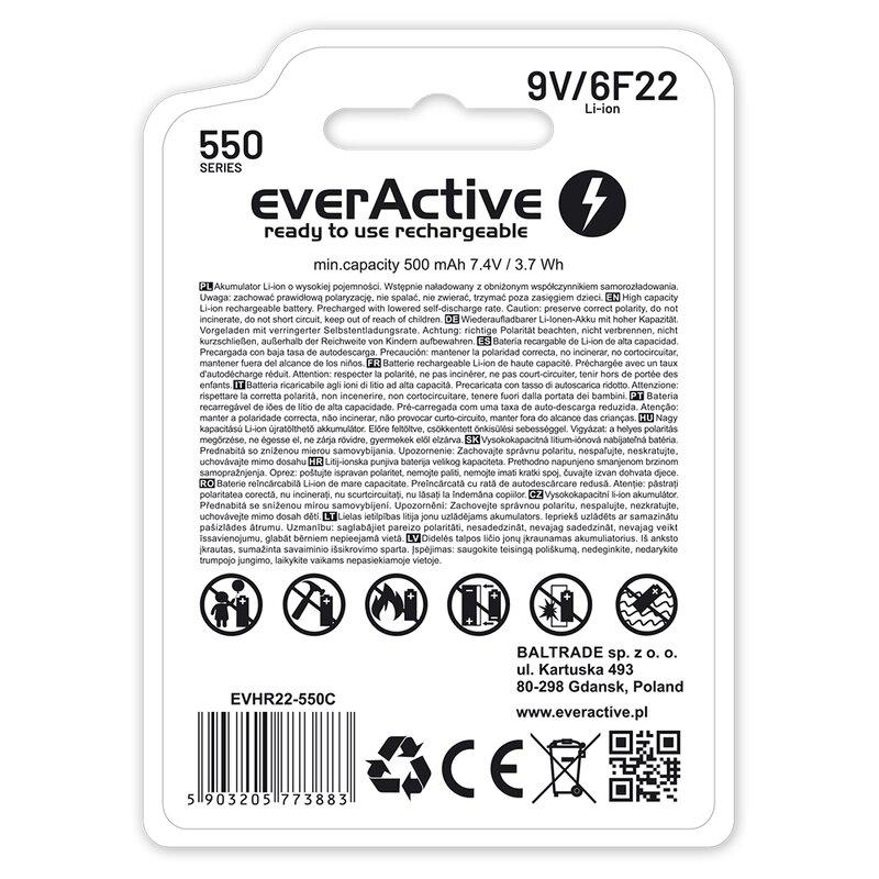 EverActive Professional+ Lithium USB-C 6F22/9V Uppladdningsbart batteri - 550mAh - 1 st.