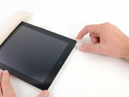Placera iOpener platt på högra kanten av iPad, jämna ut den så att det blir god kontakt mellan iPad's yta och iOpener.