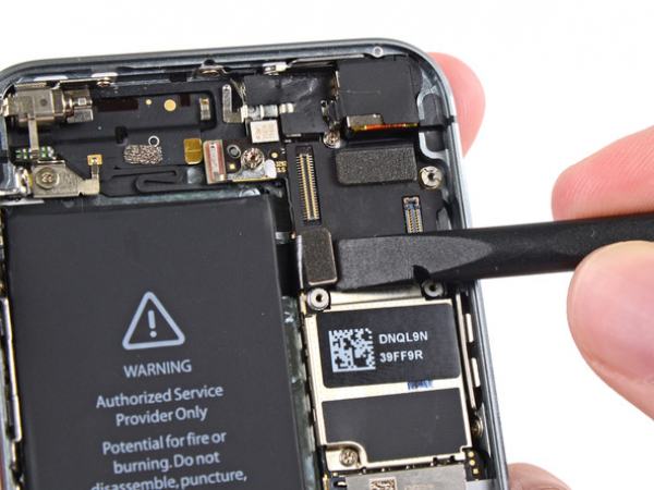 Se till att du viker Lightning-kontakten så att den inte är i vägen för logikkortet.