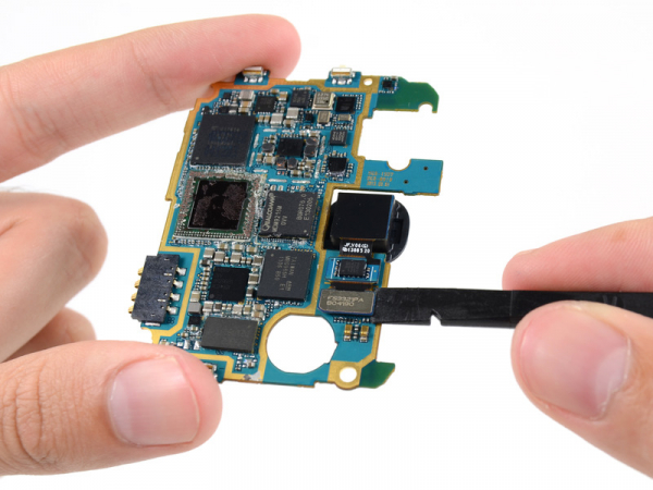 Sätt i vårt öppningsverktyg, eller fingret, i skåran på batterifacket och lyft ut batteriet uppåt.
