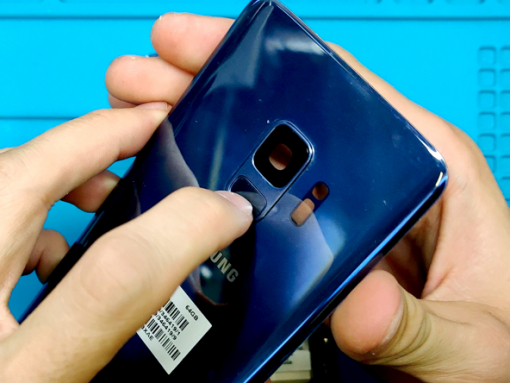 Fingeravtrycksläsaren hålls fastlimmad till bakglaset.