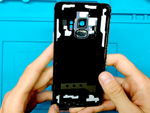 Placera försiktigt bakglaset på baksidan av mobilen.
