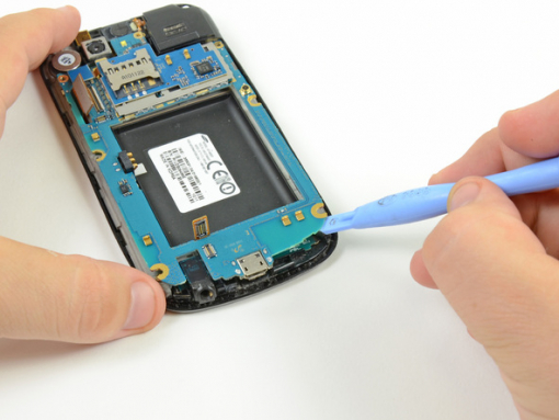 Sæt den flade kant af et plaståbningsværktøj mellem den indre bagramme og det øverste venstre hjørne af Nexus S.