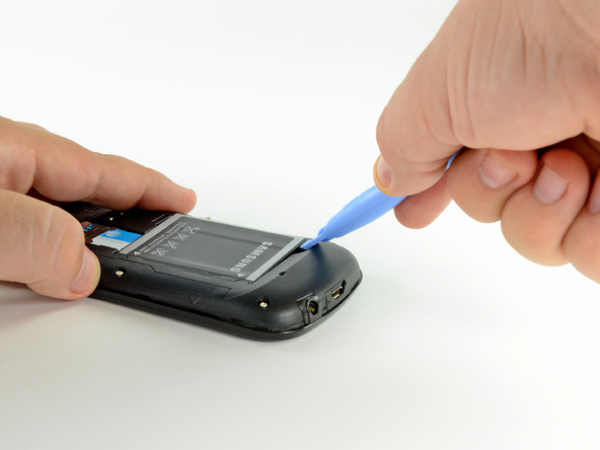 Løft batteriet op fra enden nærmest hovedtelefonudgangen ved hjælp af kanten af et plaståbningsværktøj.