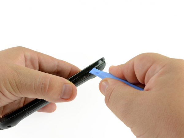 Brug et plaståbningsværktøj til at lirke bagcoveret rundt langs kanten af Nexus S.