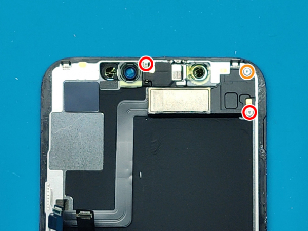 - Ta loss skruvarna som säkrar sensorn och högtalaren på baksidan av displayen: