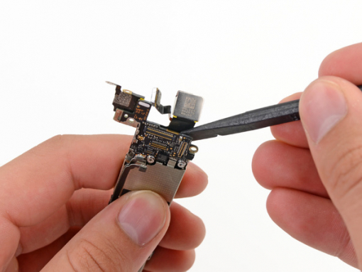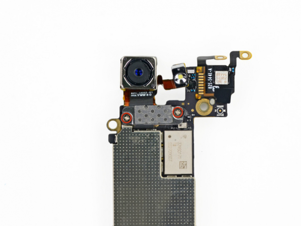 Ta bort de två 1,1 mm skruvarna som fäster den bakåtvända kameran till logikkortet.