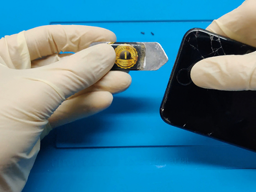 Skjut öppningsplektrum längs kanten av din iPhone, mellan bakkameran och frampanelen, för att bryta upp kvarstående lim som håller skärmen på plats.