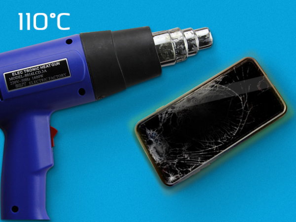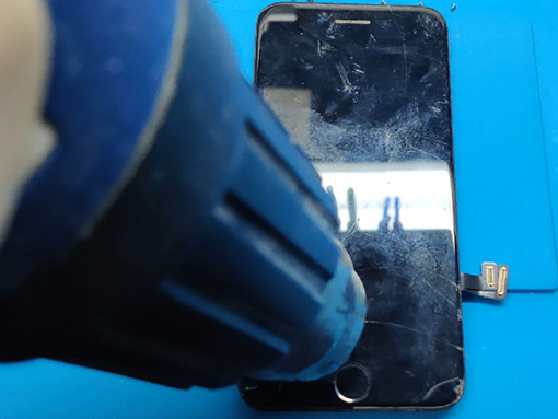 Hetta upp den nedre kanten av din iPhone kommer hjälpa till att mjuka upp limmet som skyddar skärmen, vilket gör det lättare att öppna.
