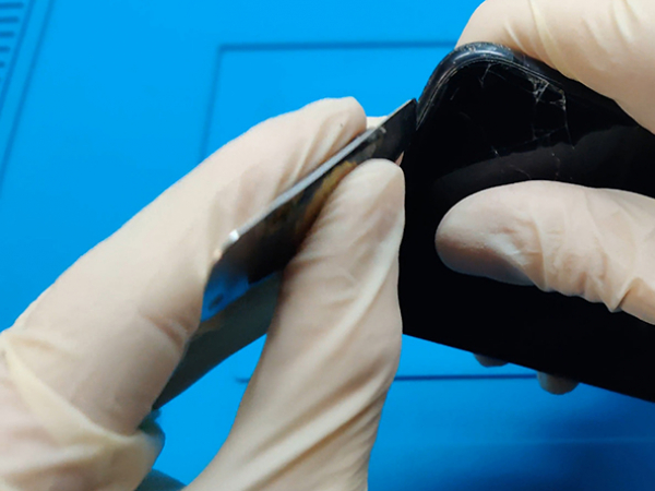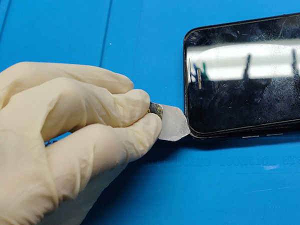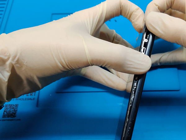 Det vattentäta limmet som håller skärmen på plats är mycket starkt. Om du har problem att göra en öppning i det, kan du vagga skärmen upp och ner för att försvaga limmet tills du kan sätta in en spudger.