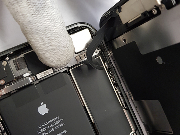 - Ta bort de fyra Phillips-skruvar som fäster LCD kabelfästet: - Använd försitkigt en spudget eller en pincett för att koppla från LED-panelkontakt och lirka upp digitaliseringskabelkontakten från uttaget. - Gör det samma med sensorkontaktfästet och sensorkabeln. - Lyft kabeln tills den separerar sig. - Ta loss LCD-skärmen. Tips: - Under denna reparation bör du komma ihåg var varje skruv sitter och var de ska tillbaka. För att undvika skador på iPhone, kom ihåg att alla skruvar ska tillbaka precis där de satt.