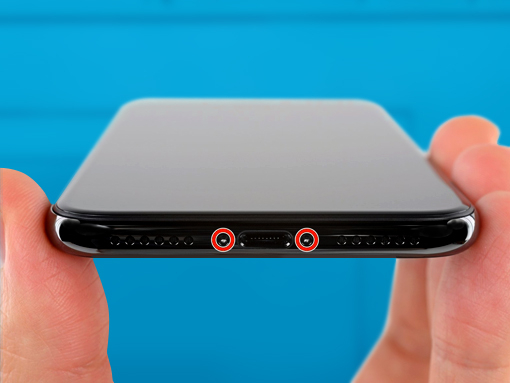Ta loss de två 6.9mm pentalobe-skruvarna som sitter på bottenkanten av iPhone.