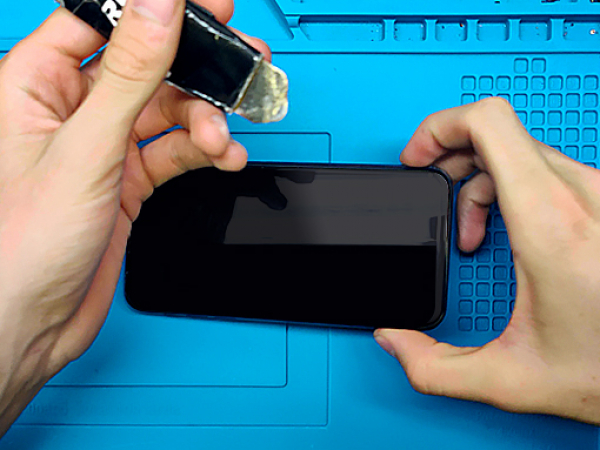 Värm inte upp mobilen. Du kan använda isopropylalkohol runt kanterna för att försvaga limmet.