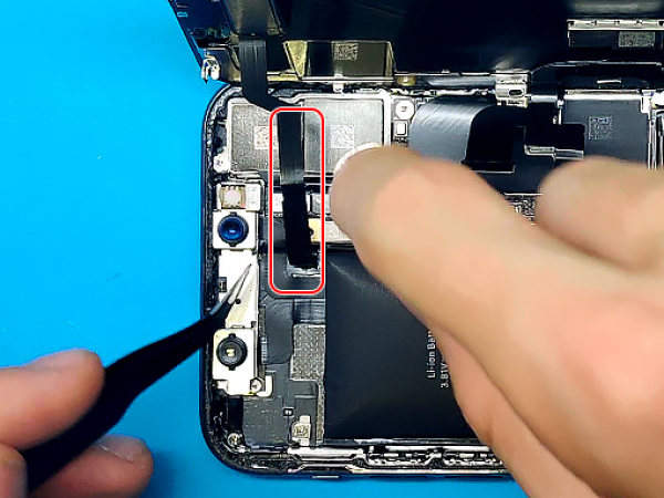 Försök att inte helt separera skärmen ännu, eftersom flera ömtåliga kablar fortfarande ansluter till mobilens logikkort.