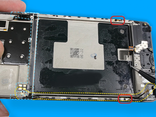 - Ta loss dess 2x 2.6mm T2 skruvar från bottenkanten av mobilen.