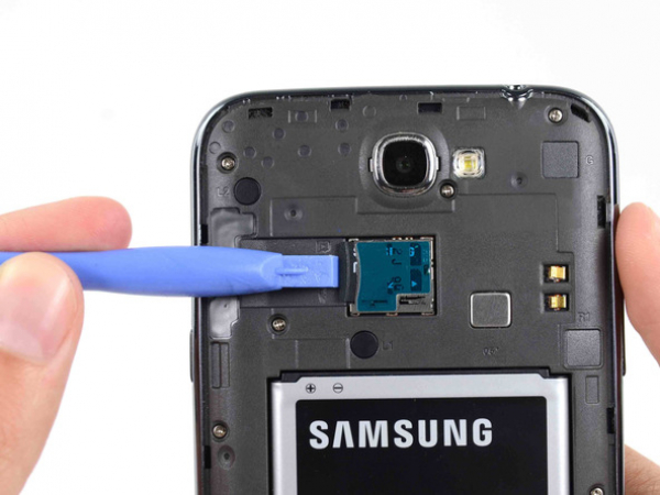 Tryck in microSD- kortet (om du har ett) djupare i sin kortplats med den platta änden av en spudger (eller din nagel) tills du hör ett klick.