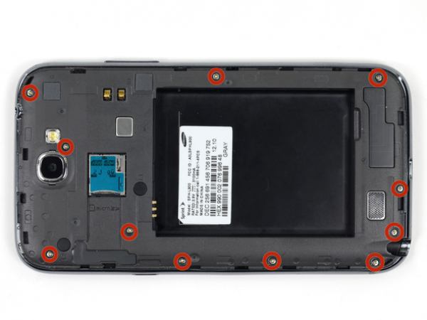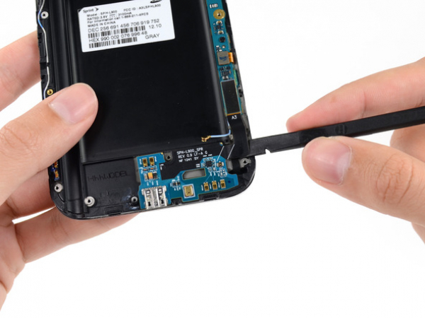 Dra med ett öppningsverktyg (eller, om du inte har ett, använd din nagel) längs den lilla öppningen på den vänstra sidan om den bakre kameran (nära strömknappen) för att bända upp bakstycket.