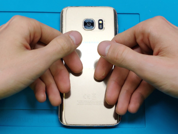 OBS: När du öppnar din mobil kommer dess vattentäthet kompromissas. Ha ersättande lim redo innan du fortsätter, eller var försiktig så att du undviker exponering för vätska om du sätter ihop din mobil utan att ersätta dess lim.