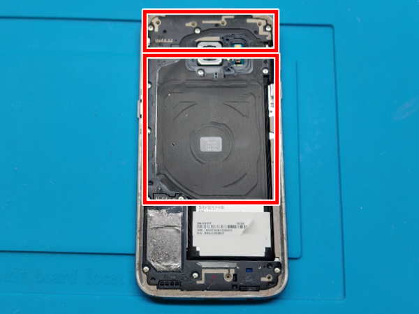 Börja med de större bitarna som NFC & trådlös laddning hopsättningen.