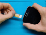 Tips: Om mobilens bakskal är sprucket, kan sugproppen vara svår att få fast. Lyft upp den med den starka tejpen, eller limma fast den med superlim och härda den så att du kan fortsätta.