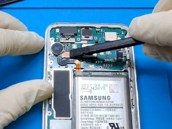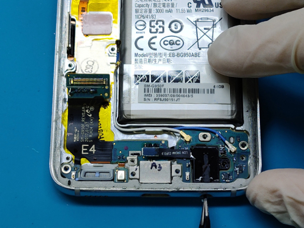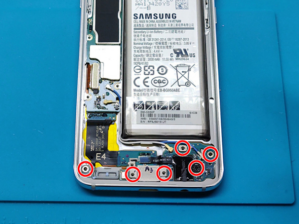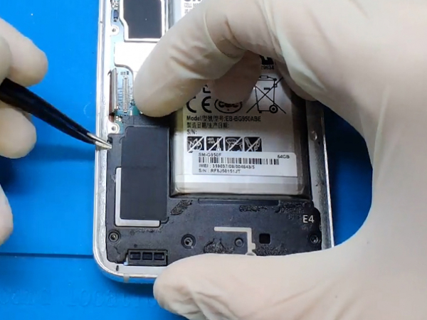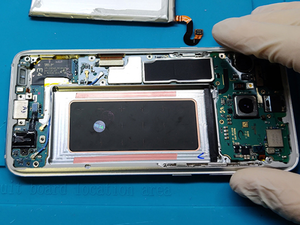 Ta bort plastdelen som täcker moderkortet vid sidan av NFC antennen och laddningsleden.