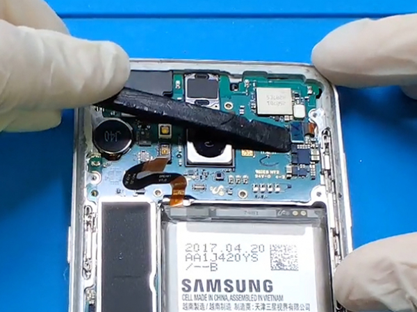 I det här steget tar vi loss andra delar från enheten, som framkameran, vibratormotorn etc.