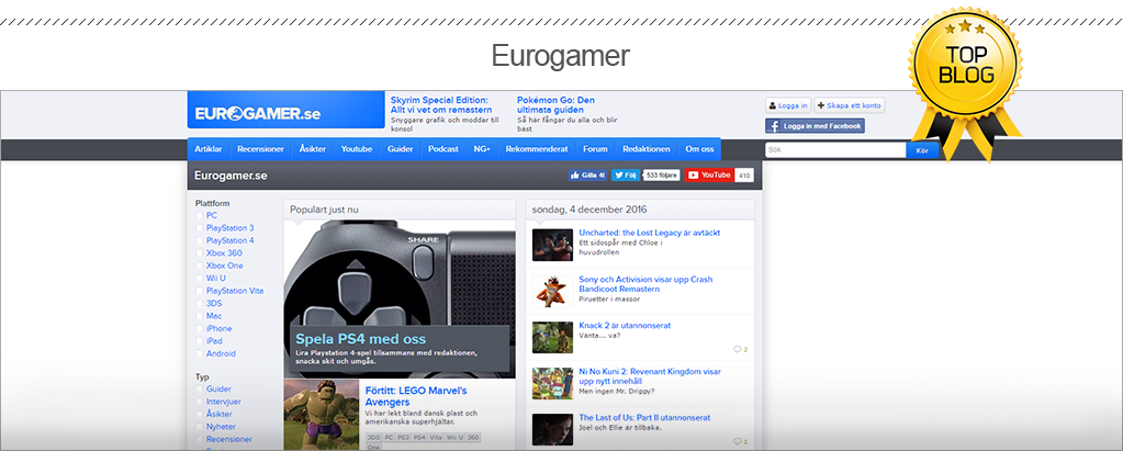Eurogamer.se är Sveriges roligaste spelsajt. Vi publicerar relevant information om allt som rör spelvärlden på daglig basis, kompletterat med recensioner, listor, skarpa krönikor och spännande förhandstittar...