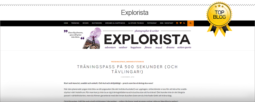 Explorista.se är bloggen som blandar träning, hälsa och personlig utveckling med uteliv, äventyr och resor. Den drivs av Emmi, äventyrstjejen som aldrig tackar nej till en dag fylld av kitesurf,...