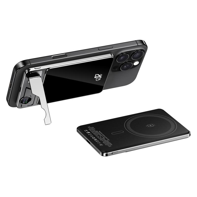 F15 Ultra-tunn 10000mAh magnetisk trådlös powerbank med 15W laddning och vikbart stativ