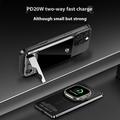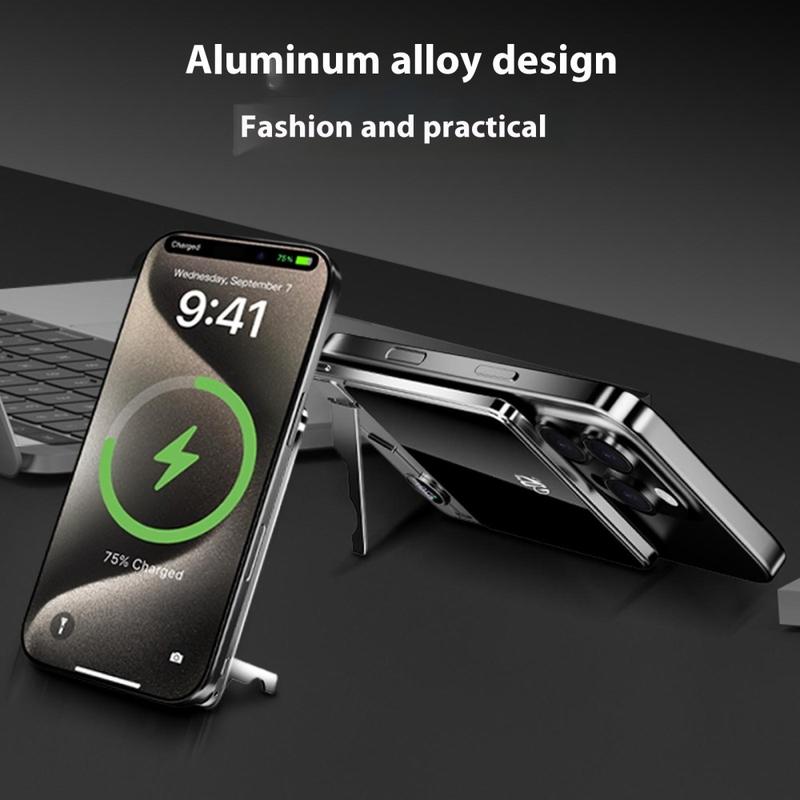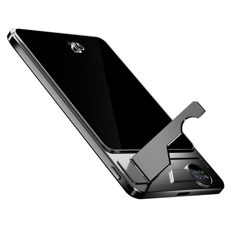 Håll dig laddad var som helst med F15 Ultra Thin Portable Power Bank. Med en kraftfull 10000mAh litiumpolymercell levererar denna eleganta laddare snabb 15W magnetisk trådlös laddning kompatibel med MagSafe-enheter, plus extra stöd för Apple Watch-laddning. Den ultratunna aluminiumlegeringen mäter bara 13,5 mm, vilket gör den lätt och enkel att bära. Ett inbyggt vikbart stativ förvandlar den till en bekväm stationär laddningsstation, medan den digitala displayen håller dig informerad om återstående batteritid. F15 är perfekt för resor, arbete och vardagsbruk och är den perfekta blandningen av bärbarhet, stil och smart laddningsprestanda.