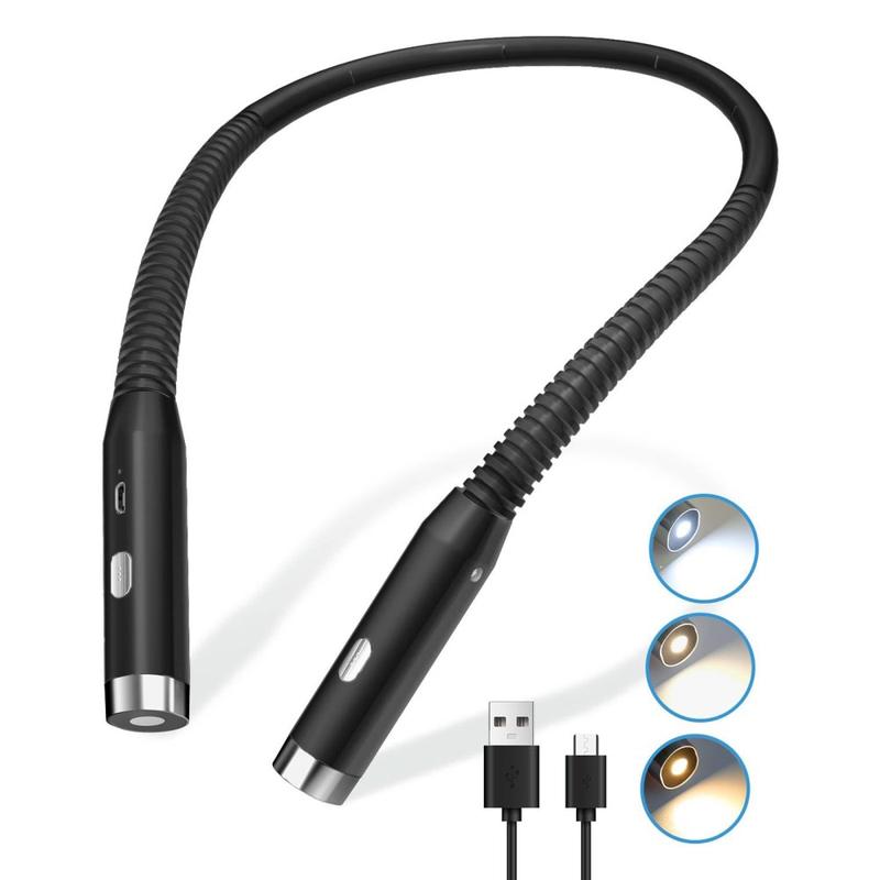F4 LED läslampa för halsen - uppladdningsbar, ögonvänlig, 360° flexibel, handsfree