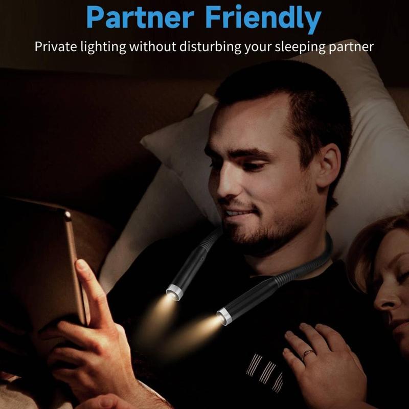 Denna nacklampa är utrustad med avancerade, flimmerfria LED-pärlor och blåljusreducerande teknik som minimerar ansträngningen för ögonen vid långvarig användning. Den ergonomiska, omslutande designen ger en stabil och bekväm passform för både vuxna och barn.