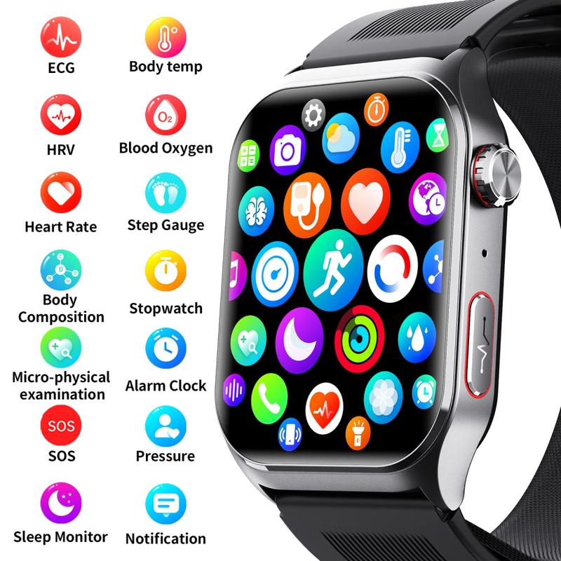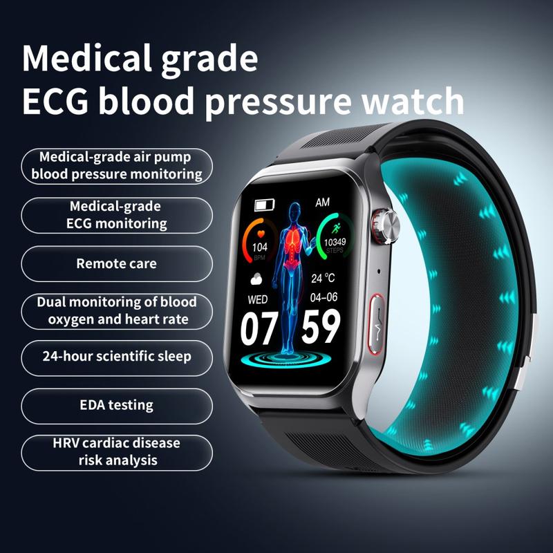 F520 Avancerad smartklocka med luftpump, blodtryck, EKG, hjärtfrekvens och sömnövervakning - 2,1" IPS-skärm, SOS Fall Alarm