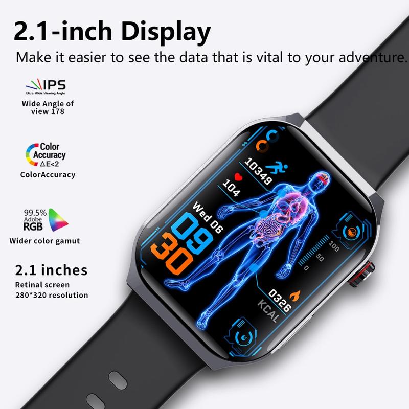 F700 Smartwatch med SOS, EKG, sömn- och fitnessmonitor - 52 sportlägen, 2,1" skärm, IP67 vattentät