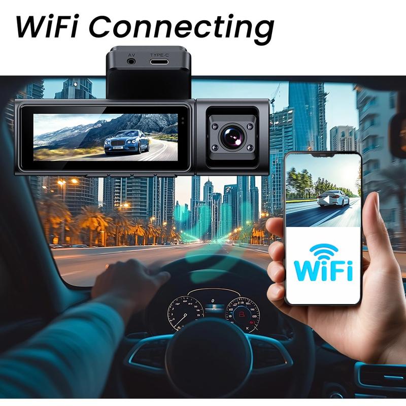 F9 3-kanals bilkamera med GPS - 4K fram, 1080P inre och bakre bilkamera, WiFi-appkontroll och mörkerseende