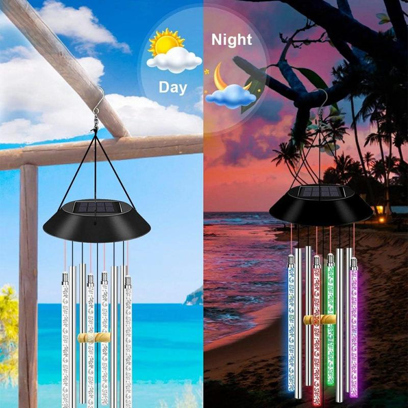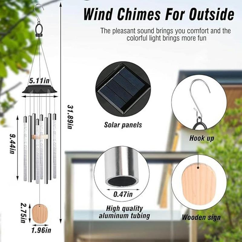 Solcellslampa för vindspel - hängande trädgårdsprydnad med LED-lampor som växlar i 7 färger, 96 cm, IP65 vattentät