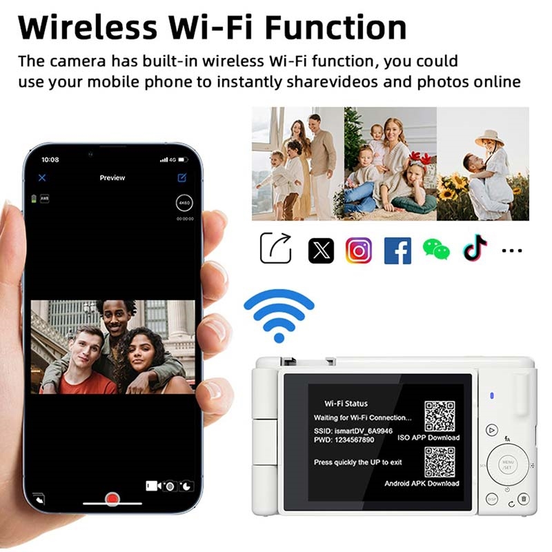 FC003W Digitalkamera med 2,8" IPS-flipskärm - 5K videoinspelning, 80MP foton och WiFi-anslutning
